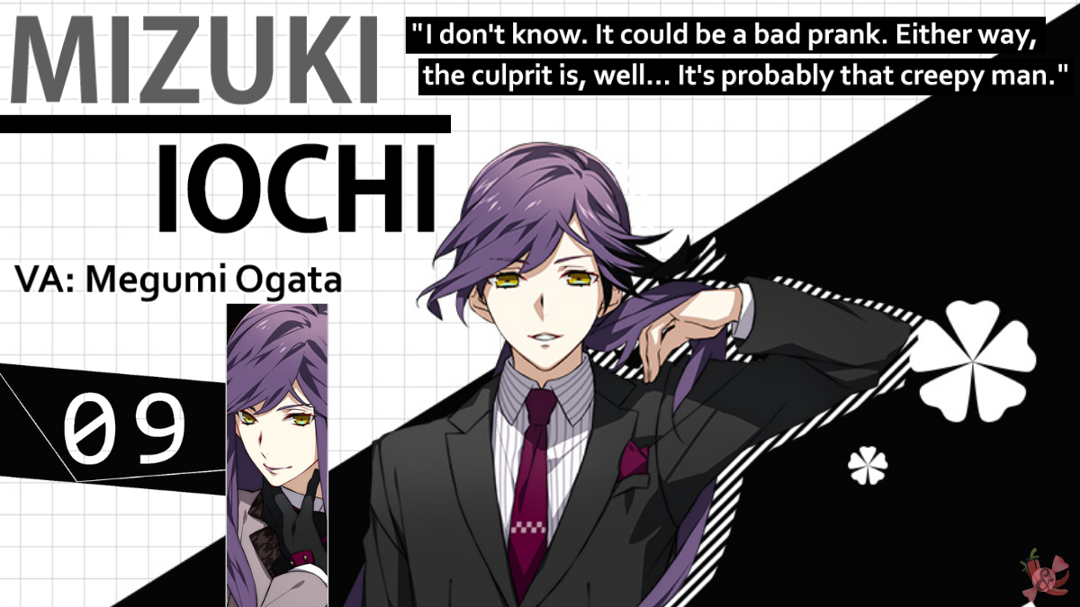 Mizuki Iochi: Flashy, fun, and full of life; Mizuki is a mystery with a mask befitting that of an entertainer. They’re quite intelligent with a flirty flare, one of those teasing characters that always know more than they’re saying.