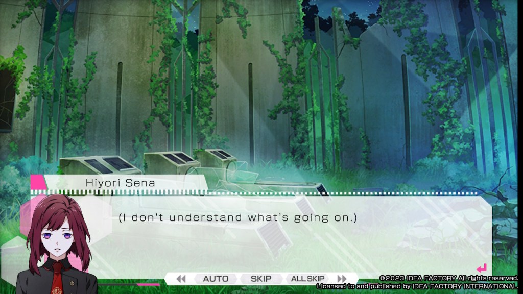 The writing is vague enough that there doesn’t seem to be any hints to– well, anything. I don’t completely understand this futuristic world that Hiyori and the others are from. I don’t understand the place they are currently located at for this “death game” they’re playing. It seems I’m not the only one since characters in the game make comments about how they also can’t follow the logic of how things happen, meaning the hand-waving of dubious situations is intentional.